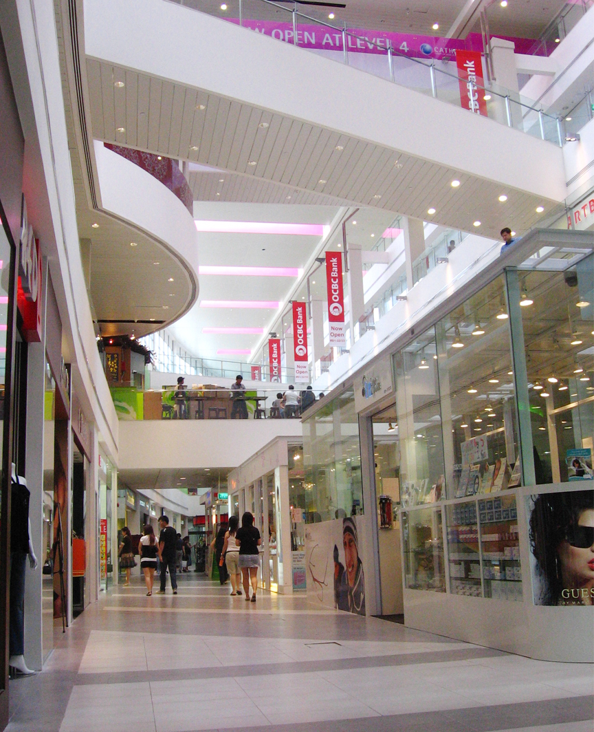 Features include a landmark curved mall that invites the shoppers towards a dramatic atrium that forms the major entrance into the development. The curved interiors are expressed in the exterior glazed facades.